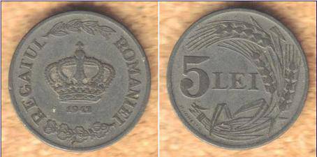 Rumunija 5 lėjos 1942 m., KM#61, XF-