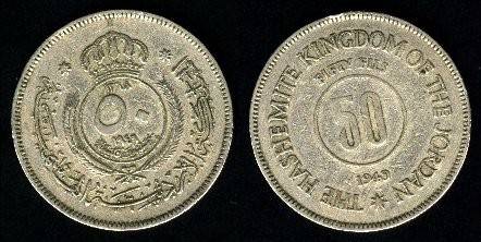 Jordanija 50 filsų 1949 m., KM#6, VF
