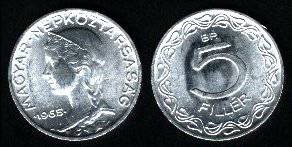 Vengrija 5 fileriai 1963 m., KM#549, XF