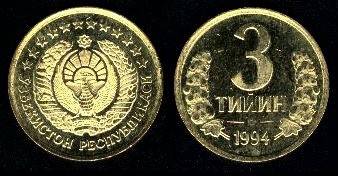 Uzbekistanas 3 tiyinai 1994 m.,KM#2.2, Unc