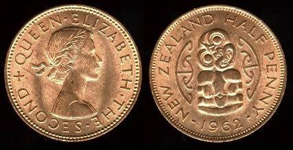 Naujoji Zelandija ½ penso 1964 m., KM#23.2, Unc-