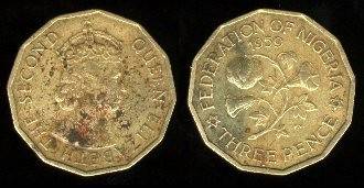 Nigerija 3 pensai 1959 m., KM#3, VF