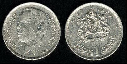 Marokas 1 dirhamas 1965 m., KM#56, VF