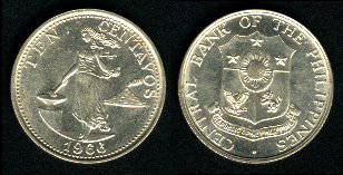 Filipinai 10 sentavų 1963 m., KM#188, VF
