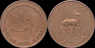 Kataras ir Dubajus 10 dirhemų 1966 m., KM#3, VF