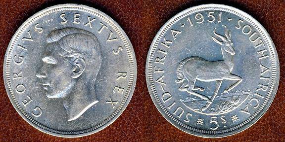 Pietų Afrika 5 šilingai 1951 m., KM#40.2, Ag, XF