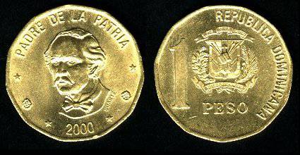 Dominikos Respublika 1 pesas 2002 m.,KM#80.2,Unc-