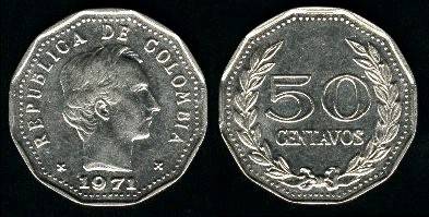 Kolumbija 50 sentavų 1974 m., KM#244.1, Unc-