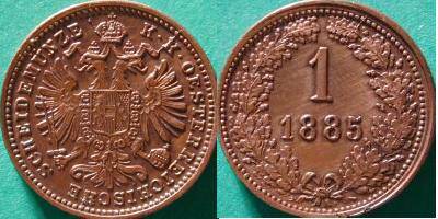 Austrija 1 kreiceris 1885 m., KM#2187, VF