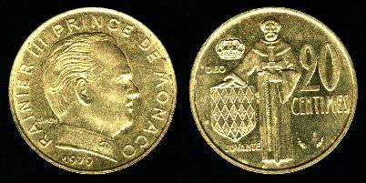 Monakas 20 santimų 1974 m., KM#143, Unc-