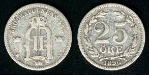 Švedija 25 erės 1897 m., KM#739, Ag, VF-