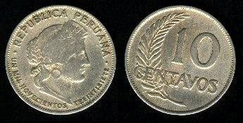 Peru 10 sentavų 1918 m., KM#214.1, VF-