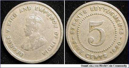 Straits Settlements 5 centai 1918,KM#31,Ag,VF