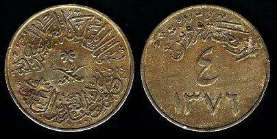 Saudo Arabija 4 giršai 1956 m., KM#42, VF