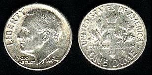 JAV 10 centų (daimas) 1964 m., KM#195, Ag, XF