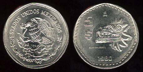 Meksika 5 pesai 1980 m., KM#485, XF-