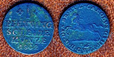 Vokietija/Braunšveigas 1 pfeningas 1802 MC,KM#,VF-