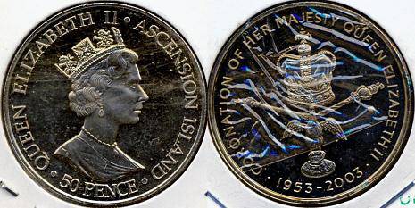 Ascension Island 50 pensų 2003 m.,KM#16,Unc-/Prlk
