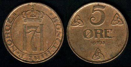Norvegija 5 erės 1941 m., KM#368, XF