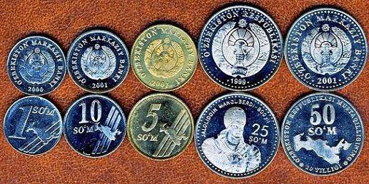 Uzbekistanas,apyvart.monetų komplekt.1999-2001,Unc