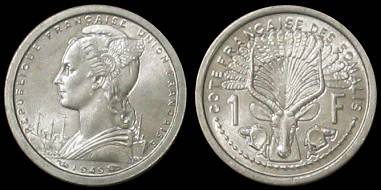 Prancūzų Somalilandas 1 frankas 1949 m., KM#4, F-