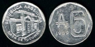 Argentina 5 australiai 1989 m., KM#101, XF-