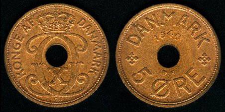 Danija 5 erės 1940 m., KM#828.2, XF+