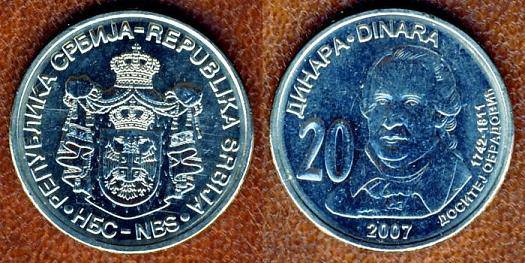 Serbija 20 dinarų 2007 m. D.Obradovič, KM#new, Unc