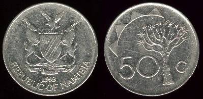 Namibija 50 centų 1993 m., KM#3, VF+