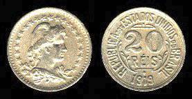 Brazilija 20 reisų 1919 m., KM#516.2, VF
