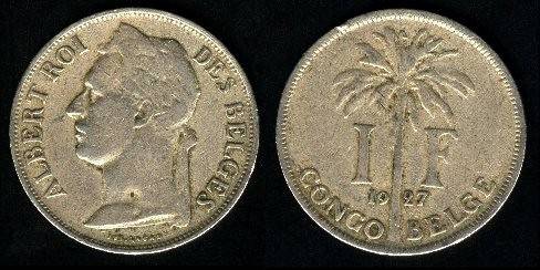 Belgų Kongas 1 frankas 1920 m., KM#20, F+