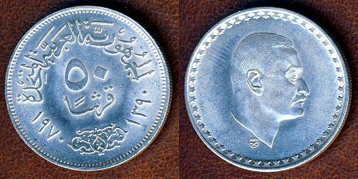 Egiptas 50 piastrų 1970 m., KM#423, Ag, XF