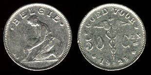 Belgija 50 santimų 1932 m., KM#88, VF