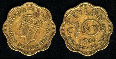 Ceilonas 10 centų 1944 m., KM#118, VF-