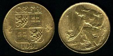 Čekoslovakija (ČSFR) 1 krona 1991 m., KM#151, XF