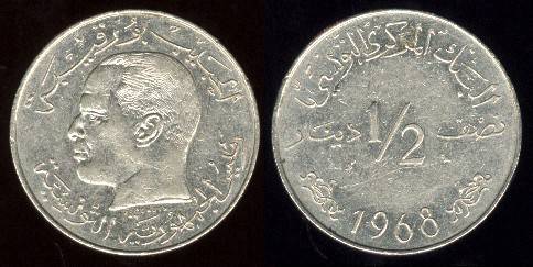Tunisas ½ dinaro 1968 m., KM#291, XF