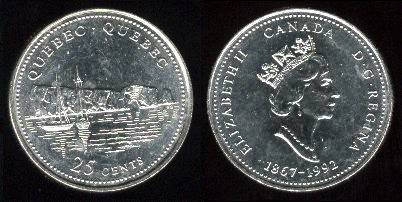 Kanada 25 centai 1992 m. Quebec, KM#234, Unc-