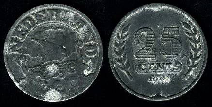Nyderlandai 25 centai 1941 m., KM#174, XF-