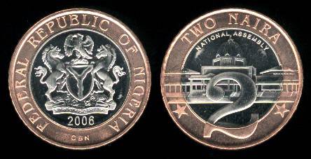 Nigerija 2 nairos 2006 m., KM#19, Unc