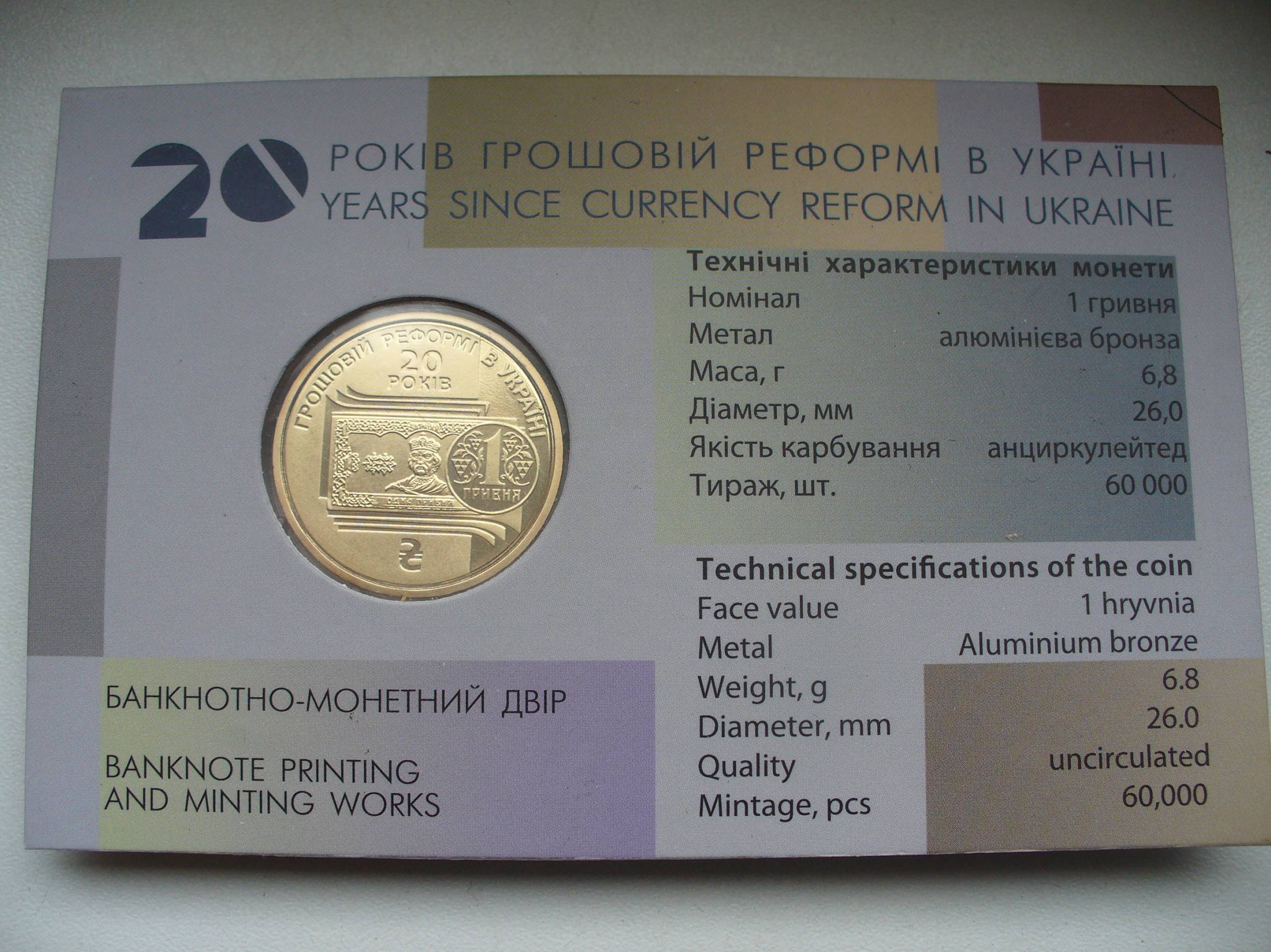 Ukraina 1 GRIVEN 2016.Pinigų reforma.KORTELĖ__4724