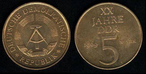 Vokietijos DR 5 markės 1969 m., KM#22.1, Unc-