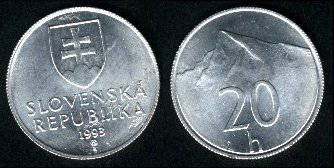 Slovakija 20 helerių 2000 m., KM#18, Unc