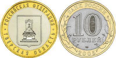 Rusija 10 rublių 2005 m.,Tverės sritis, KMY#888,XF