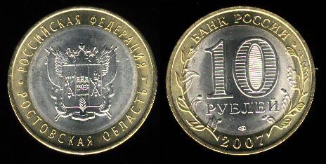 Rusija 10 rublių 2007,Rostovo sritis, KMY#970,Unc