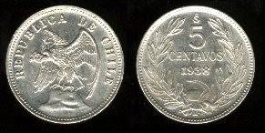 Čilė 5 sentavai 1922 m., KM#165, VF