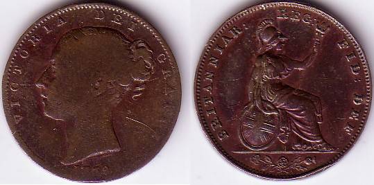 Anglijos farthing 1839m.