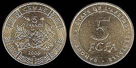 Centrinės Afrikos V-bės 5 frankai 2006 m.,#18,Unc