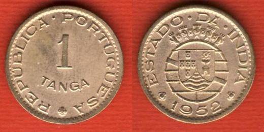 Portugalų Indija 1 tanga 1952 m., KM#28, XF
