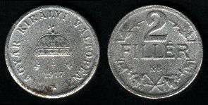 Vengrija 2 fileriai 1918 m., KM#497, VF-