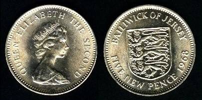 Džersis 5 naujieji pensai 1968 m., KM#32, XF-